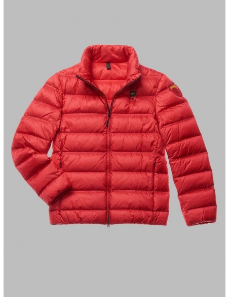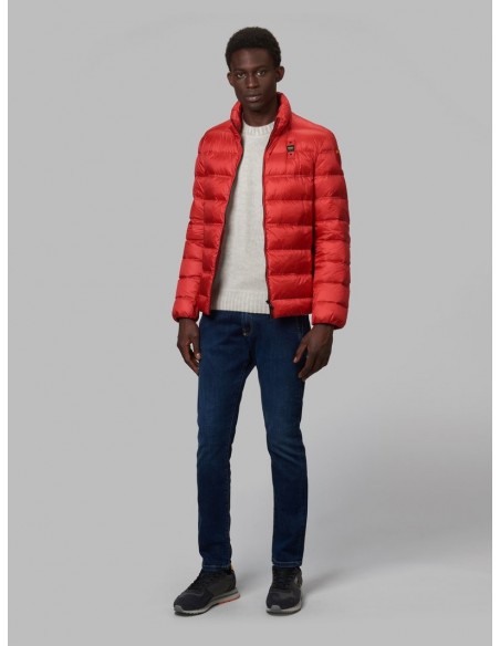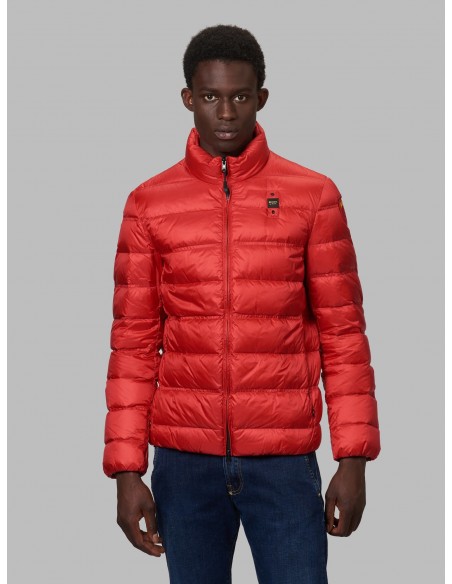 Plumífero liso, relleno de cálida pluma ligera con cuello Mao.
