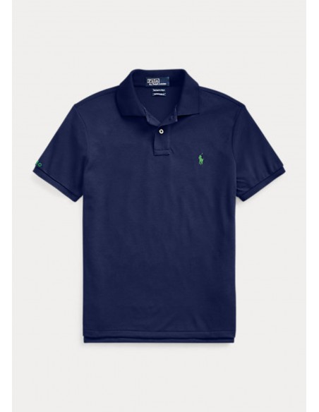 Polo de cuello acanalado y tapeta de dos botones, creada en corte custom slim fit, que esta ajustado en la cintura y las mangas se ajustan al bíceps. The Earth Polo ha sido diseñado pensando en la Madre Naturaleza y se ha confeccionado con un innovador tejido producido completamente a partir de botellas de plástico, teñido único mediante un proceso que no requiere agua.