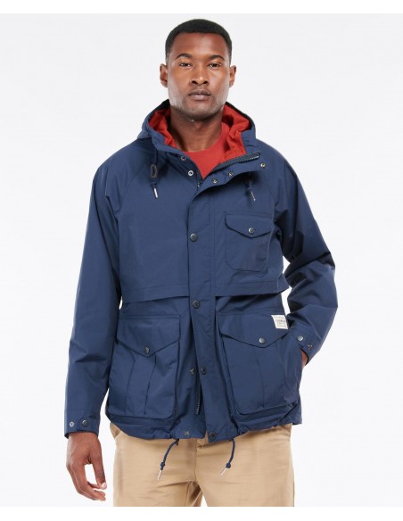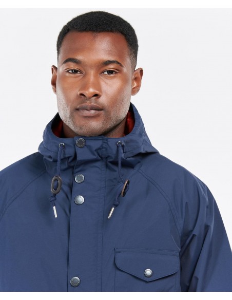 Esta chaqueta cuenta con una capucha fija para una protección esencial en días de lluvia y se alterna en el cuello y el dobladillo. Cuenta con un bolsillo en el pecho y dos bolsillos inferiores de gran tamaño.