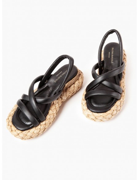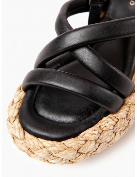 Sandalia 100% cuero sintético con suela y plataforma de cuero