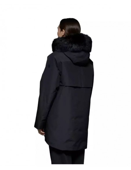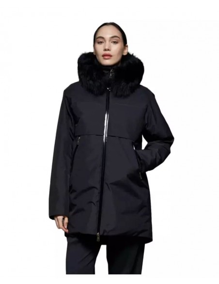 El abrigo para mujer está confeccionado en poliéster y diseñado con un ajuste cómodo para garantizar el máximo confort. Cuenta con bolsillos laterales funcionales, una capucha con borde de pelo desmontable, y un parche con el logotipo de la marca aplicado en la manga. Su cierre frontal con cremallera añade practicidad y estilo, convirtiéndolo en una prenda versátil y elegante para los días más fríos.