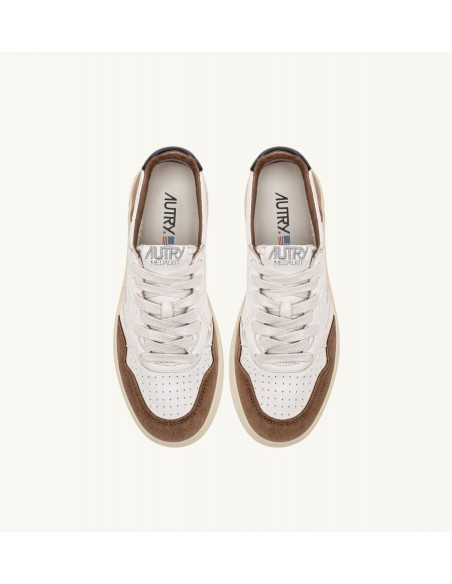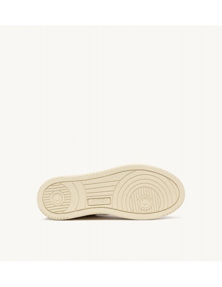 Los cordones de algodón y la etiqueta tonal en la lengüeta de cuero añaden un toque elegante. El cuello de tobillo acolchado combina estilo y soporte, y el icónico parche exhibe el logo de Autry. El lujoso forro de cuero y algodón terry brinda comodidad interior, junto con un refuerzo elevado de 2 cm en cuero para un confort adicional. La suela de goma presenta un distintivo diseño bicolor con el logo, ofreciendo estilo y funcionalidad, con una altura que varía entre 2.5 y 3.5 cm.