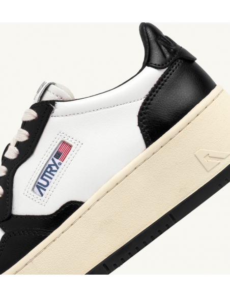 Todos los elementos característicos permanecen inalterados: están confeccionadas en piel flexible con un patrón de bloques de color blanco y negro, perforadas para mayor transpirabilidad y con el logotipo de Autry en el lateral.