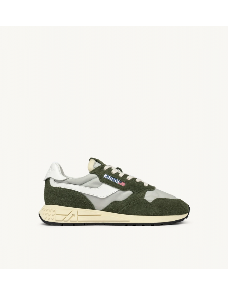 Descubre las zapatillas Reelwind, una combinación perfecta de estética vintage y rendimiento superior. Estas zapatillas para hombre presentan una parte superior de cuero, ante y nailon, con elegantes inserciones de ante verde ciprés que les dan un atractivo look envejecido. La punta lisa garantiza un acabado limpio, mientras que los cordones planos de algodón aseguran un ajuste seguro.