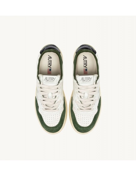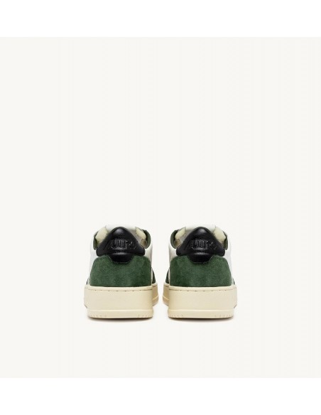 Los cordones de algodón y la etiqueta tonal en la lengüeta de cuero añaden un toque elegante. El cuello de tobillo acolchado combina estilo y soporte, y el icónico parche exhibe el logo de Autry. El lujoso forro de cuero y algodón terry brinda comodidad interior, junto con un refuerzo elevado de 2 cm en cuero para un confort adicional. La suela de goma presenta un distintivo diseño bicolor con el logo, ofreciendo estilo y funcionalidad, con una altura que varía entre 2.5 y 3.5 cm.