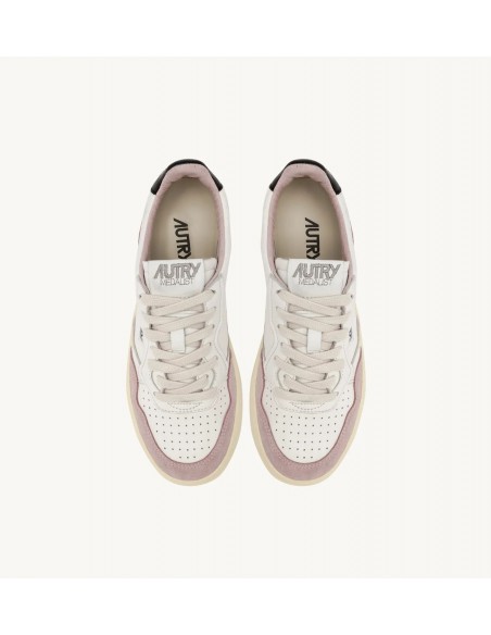 Los cordones de algodón y la etiqueta tonal en la lengüeta de cuero añaden un toque elegante. El cuello de tobillo acolchado combina estilo y soporte, y el icónico parche exhibe el logo de Autry. El lujoso forro de cuero y algodón terry brinda comodidad interior, junto con un refuerzo elevado de 2 cm en cuero para un confort adicional. La suela de goma presenta un distintivo diseño bicolor con el logo, ofreciendo estilo y funcionalidad, con una altura que varía entre 2.5 y 3.5 cm.