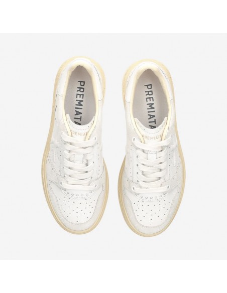 Creada para reinterpretar el mundo del deporte en clave couture, la nueva zapatilla de Premiata está llena de detalles únicos. Destacan los numerosos agujeros que caracterizan su diseño, inspirados en las técnicas "Brogue" del mundo clásico en el que Premiata hunde sus raíces. Con una altura de suela de 3 cm y una plantilla interna de 24,8 cm, estas zapatillas no solo ofrecen un estilo distintivo, sino también una comodidad óptima.