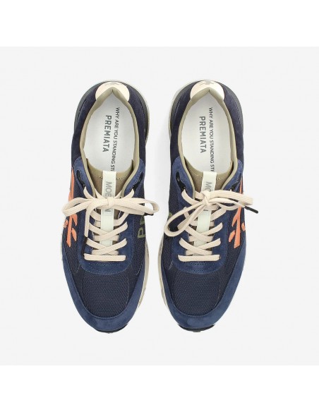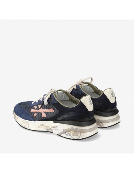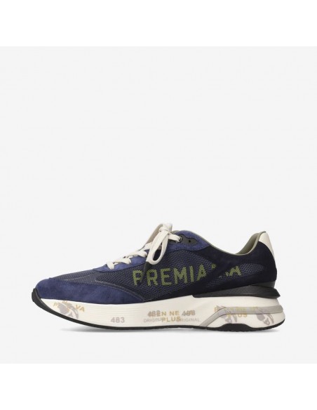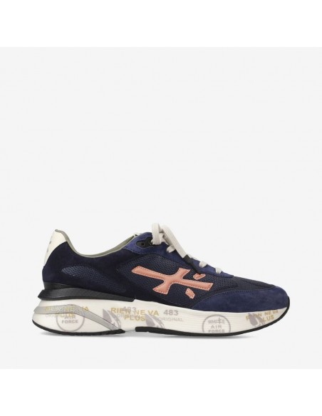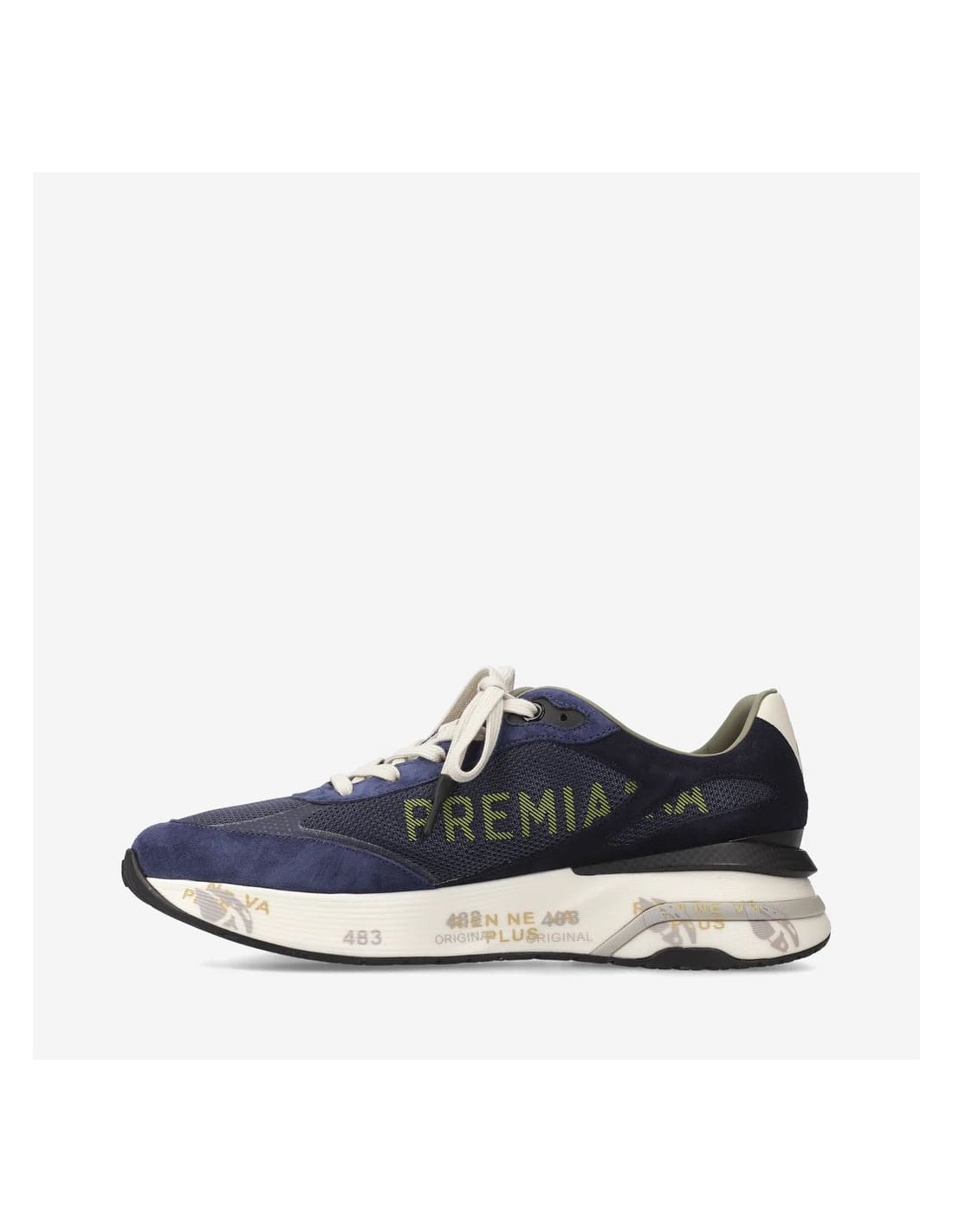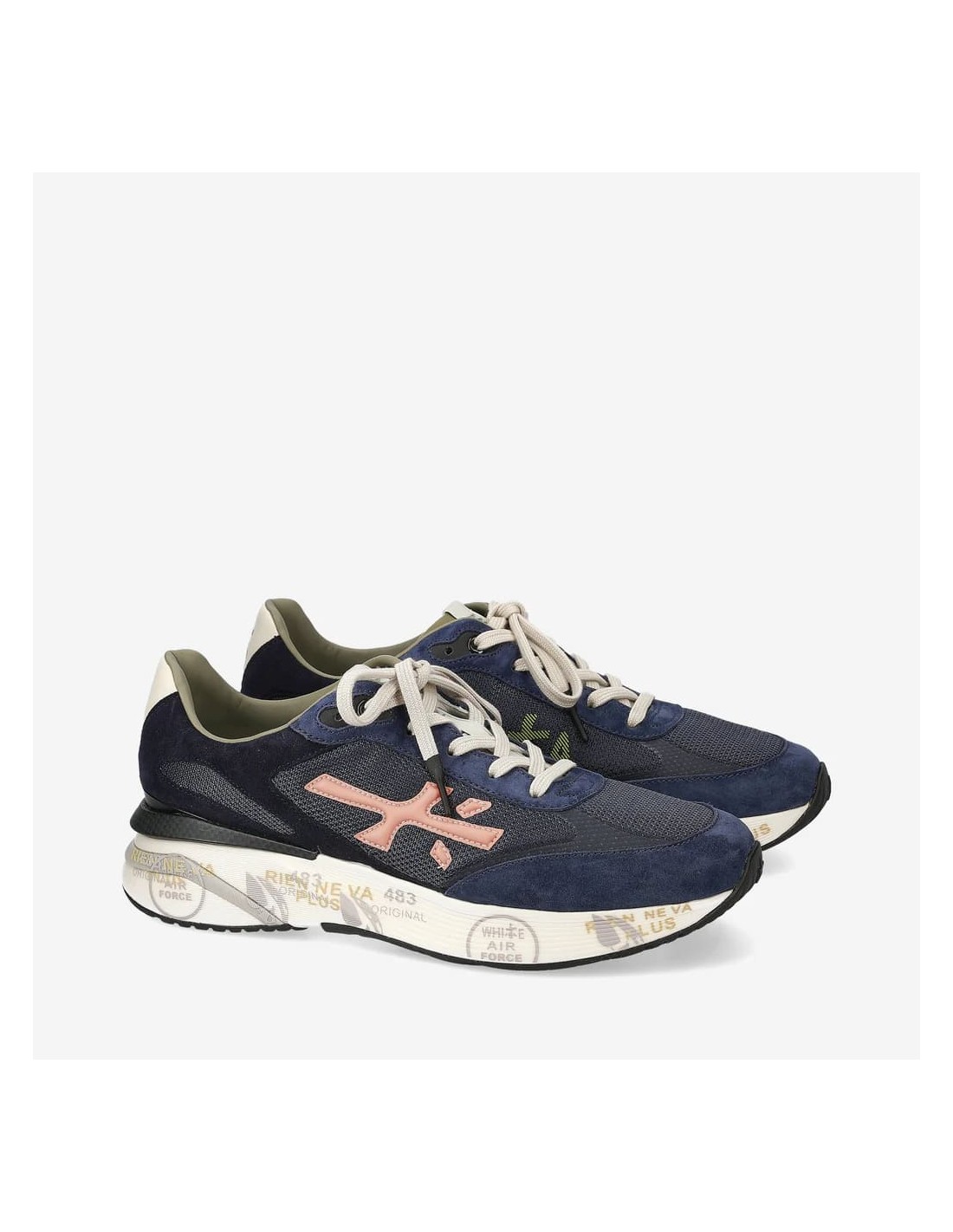 Descubre las elegantes zapatillas Premiata modelo Moerun, que combinan azul oscuro con matices en gris. Su suela de goma blanca de 4,5 cm amortigua cada paso, brindando una comodidad excepcional. Confeccionadas en piel de ante de alta calidad, estas zapatillas son sinónimo de lujo y durabilidad. El cierre de cordones garantiza un ajuste óptimo para cualquier ocasión.