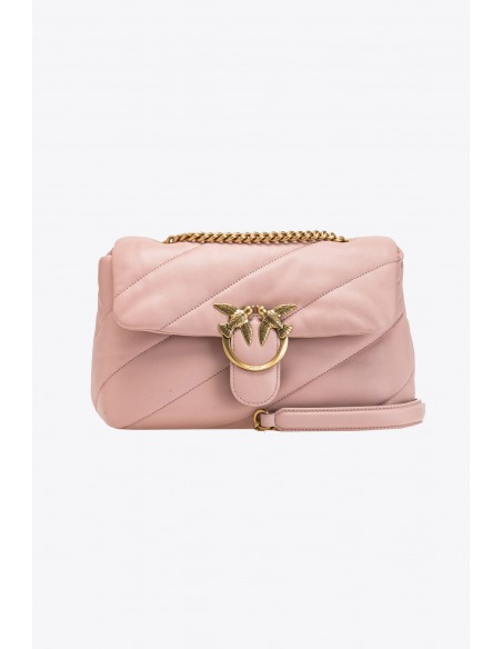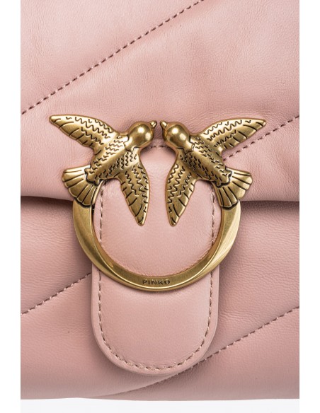 El bolso Classic Love Bag Puff está confeccionado en napa suave con un elegante acolchado en ángulo. El cierre está adornado con la icónica hebilla Love Birds Diamond Cut de metal. En el interior, encontrarás un forro de microfibra con acabado de ante, un panel divisorio con cremallera y un bolsillo interno adicional. La correa combina una clásica cadena redonda de metal con una cómoda hombrera de napa.