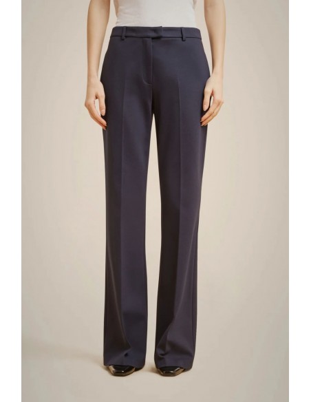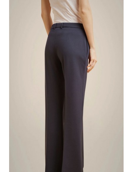 Pantalones de campana de punto Milano con cierre oculto en la parte delantera mediante cremallera, gancho y contrabotón. Cintura con trabillas para cinturón y bolsillos insertados a lo largo de los laterales. Un diseño elegante y estructurado, ideal para un look moderno y sofisticado.
