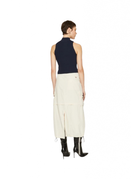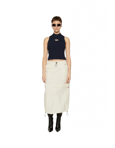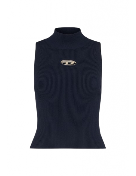 Este top sin mangas para mujer está confeccionado en un punto de canalé elástico que se ajusta al cuerpo, proporcionando un fit ceñido y favorecedor. Con un diseño de cuello alto y ligeramente corto, presenta una versión actualizada del logotipo Oval D. Incluye una placa de metal integrada en un recorte en el pecho, dejando entrever destellos sutiles de piel para un toque moderno y elegante.