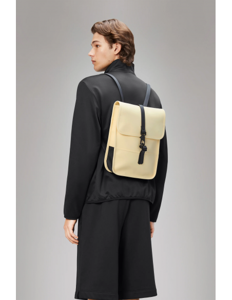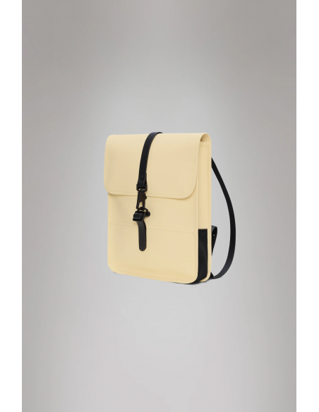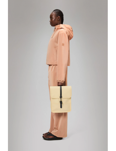 La Backpack Micro Mantequilla de Rains es la versión más compacta del diseño Backpack, ideal para quienes prefieren un formato ligero sin renunciar al estilo y la funcionalidad. Con su silueta rectangular y líneas limpias, presenta una solapa superior con cierres magnéticos, un compartimento principal espacioso y un bolsillo interior apto para portátiles de hasta 11". Fabricada en el emblemático tejido de PU de Rains, es resistente al agua, duradera y suave al tacto. Perfecta para desplazamientos urbanos a pie o en bicicleta.