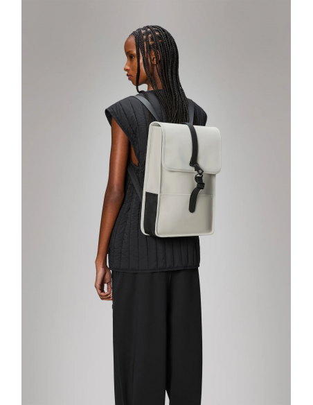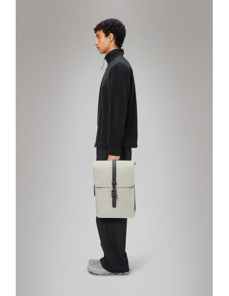 La Backpack Mini Blanca de Rains es una versión compacta del icónico modelo Backpack, ideal para quienes buscan funcionalidad en un formato reducido. Con su diseño minimalista y estructura rectangular, incluye una solapa superior con cierres magnéticos, un compartimento principal amplio y un bolsillo interior acolchado para portátil de hasta 13” con funda. Además, incorpora un bolsillo trasero oculto perfecto para el móvil. Confeccionada en el característico tejido de PU de Rains, es resistente al agua, duradera y suave al tacto. Ideal para trayectos urbanos a pie o en bici.