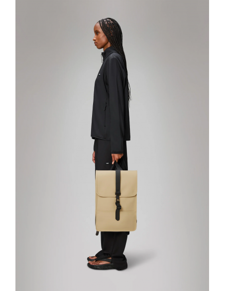 La Backpack Mini Arena de Rains es una versión compacta del icónico modelo Backpack, ideal para quienes buscan funcionalidad en un formato reducido. Con su diseño minimalista y estructura rectangular, incluye una solapa superior con cierres magnéticos, un compartimento principal amplio y un bolsillo interior acolchado para portátil de hasta 13” con funda. Además, incorpora un bolsillo trasero oculto perfecto para el móvil. Confeccionada en el característico tejido de PU de Rains, es resistente al agua, duradera y suave al tacto. Ideal para trayectos urbanos a pie o en bici.