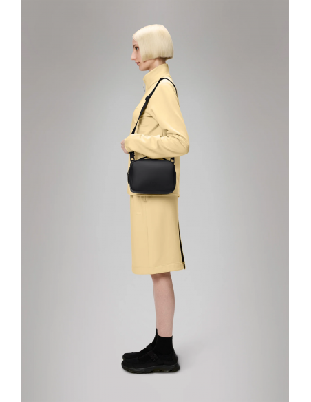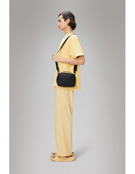 <p>La Box Bag Negra de Rains combina funcionalidad y diseño minimalista en un formato versátil. Su silueta angulosa y compacta es perfecta para llevar los esenciales diarios e incluso una capa adicional. Dispone de un único compartimento principal con cremallera revestida para mayor protección frente a la lluvia. Gracias a su diseño estructurado, puede llevarse al hombro, cruzado o de la mano. Se completa con una correa tipo cincha ajustable y desmontable, adaptándose a cualquier estilo de vida urbano. Está confeccionada en el característico tejido de PU de Rains, resistente, duradero y con un acabado suave.</p>