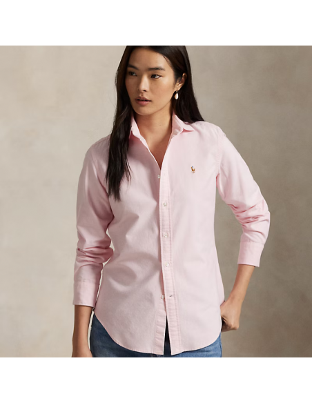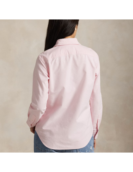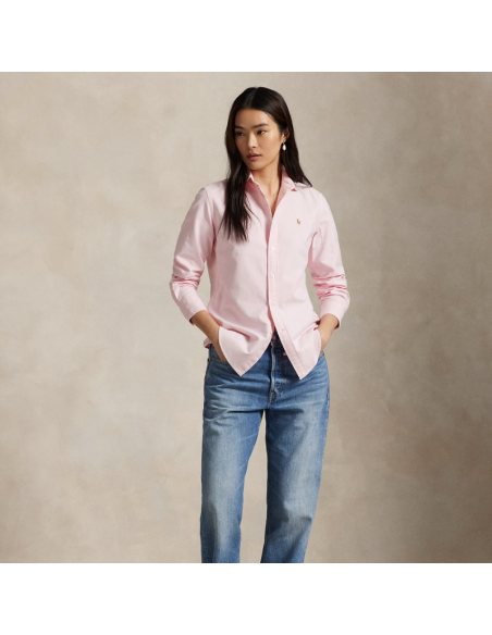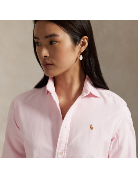 La camisa Oxford Slim Rosa Fit de Ralph Lauren es una prenda icónica reinventada con un ajuste más entallado y actual. Confeccionada en oxford 100% algodón, destaca por su tacto suave y su estructura duradera. Su corte Slim presenta hombros estrechos y una ligera entalladura en la cintura para una silueta favorecedora, pensada para quedar a la altura de la cadera. Incluye cuello clásico de punta, tapeta frontal con botones, manga larga con puños abotonados y el inconfundible logo del caballo bordado en multicolor en el pecho izquierdo. El canesú trasero con pinzas aporta mayor movilidad y comodidad. Ideal para estilismos casuales o formales.