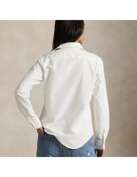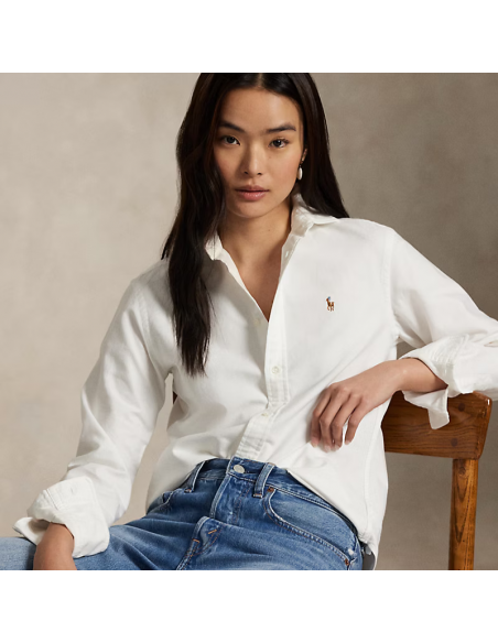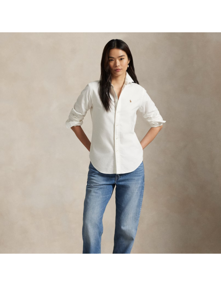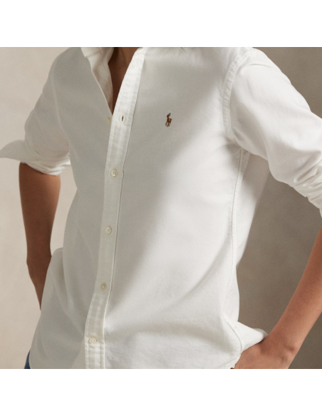 La camisa Oxford Slim Fit Blanca de Ralph Lauren es una prenda icónica reinventada con un ajuste más entallado y actual. Confeccionada en oxford 100% algodón, destaca por su tacto suave y su estructura duradera. Su corte Slim presenta hombros estrechos y una ligera entalladura en la cintura para una silueta favorecedora, pensada para quedar a la altura de la cadera. Incluye cuello clásico de punta, tapeta frontal con botones, manga larga con puños abotonados y el inconfundible logo del caballo bordado en multicolor en el pecho izquierdo. El canesú trasero con pinzas aporta mayor movilidad y comodidad. Ideal para estilismos casuales o formales.