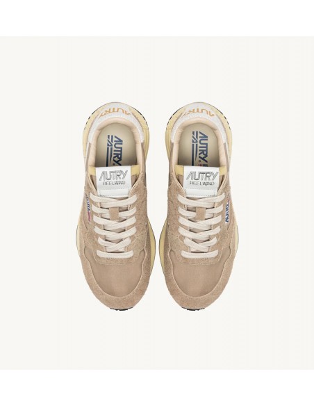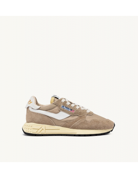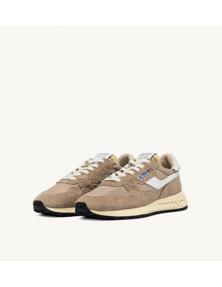 Las Reelwind Low Beige de Autry combinan alma deportiva y estética urbana en una silueta ligera, versátil y sofisticada. Su diseño en paneles mezcla nailon beige, ante tono sobre tono y piel craquelada blanca, aportando contraste y profundidad al perfil.