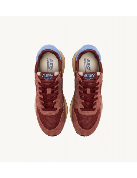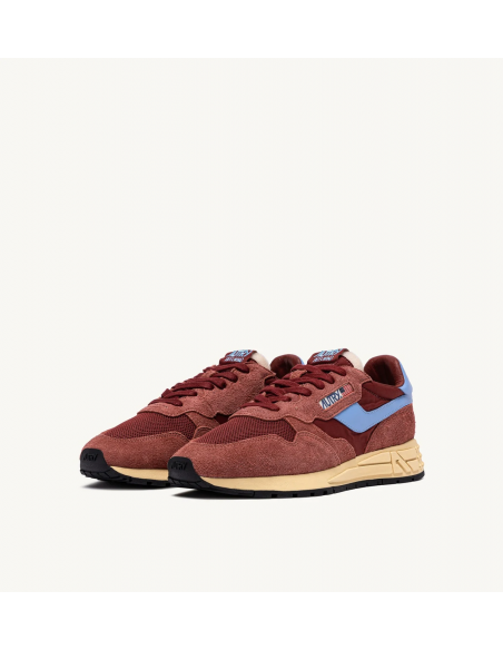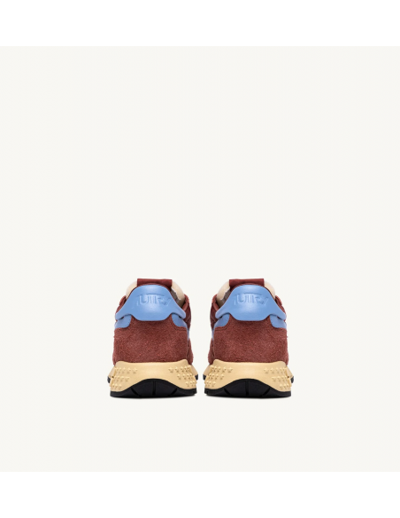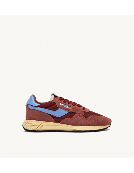 Las Reelwind Low Caldera de Autry combinan alma deportiva y estética urbana en una silueta ligera, versátil y sofisticada. Su diseño en paneles mezcla nailon caldera, ante tono sobre tono y piel craquelada azul y caldera, aportando contraste y profundidad al perfil.