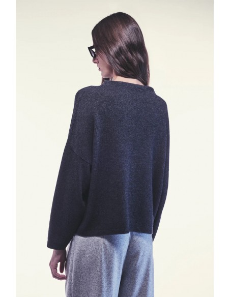El jersey Dalia de Liviana Conti está elaborado en una mezcla de cachemir reciclado (50%) y poliamida (50%), ofreciendo una textura suave, cálida y ligera, ideal para el uso diario con un enfoque responsable.
