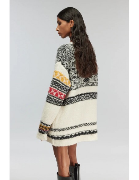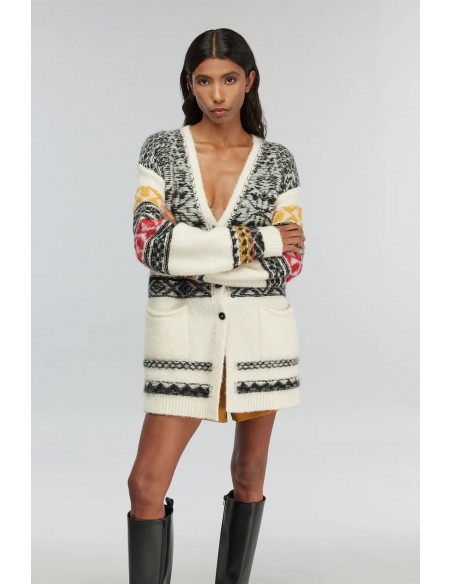 El Cardigan Pierluigi de Semicouture es una pieza versátil y sofisticada que combina un diseño clásico con la calidez de un tejido de alta calidad. Confeccionado en jacquard, ofrece una textura rica y visualmente atractiva que eleva cualquier look.