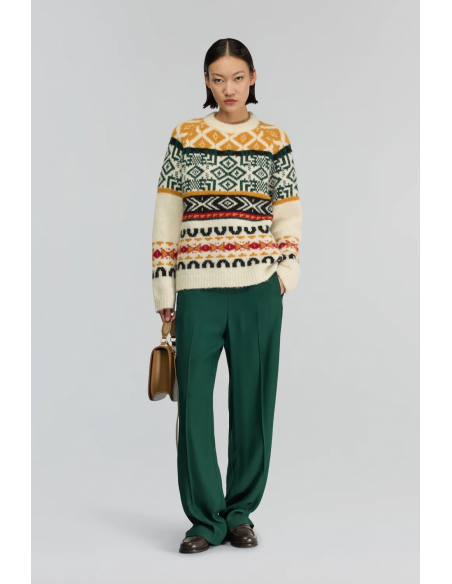 El Jersey Ottavio de Semicouture destaca por su tejido jacquard que aporta textura y carácter a cualquier look. Con cuello redondo y mangas raglán, ofrece comodidad y libertad de movimiento, manteniendo un aire sofisticado y actual.
