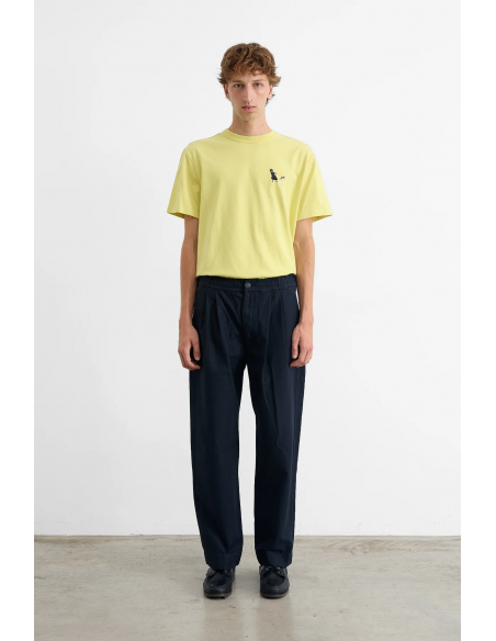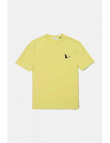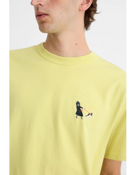 La Camiseta Walker de Edmmond Studios es una camiseta de manga corta en vibrante color amarillo, elaborada en 100% algodón orgánico de 220 g/m² para ofrecer suavidad, transpirabilidad y durabilidad. En la parte frontal superior izquierda, luce un delicado bordado “Walkers” con un divertido diseño de un espía paseando a su perro, que añade un toque creativo y distintivo.