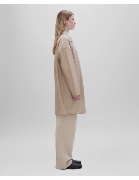 El Abrigo Teena de Nailon Beige de Aspesi combina un diseño minimalista con materiales técnicos de alta calidad. Está confeccionado en suave y ligero nailon y cuenta con relleno Thermore, un aislante térmico avanzado que aporta calidez sin añadir peso, ideal para climas frescos.