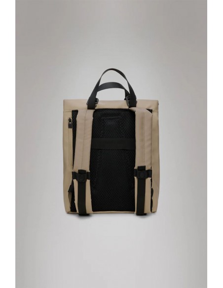 La 2 Way Tote Backpack Beige de Rains es una mochila urbana impermeable diseñada para la vida diaria, perfecta para ir al trabajo, la universidad o moverte por la ciudad. Su diseño versátil permite llevarla como mochila tradicional con tirantes acolchados o como bolso tote gracias a las asas superiores.