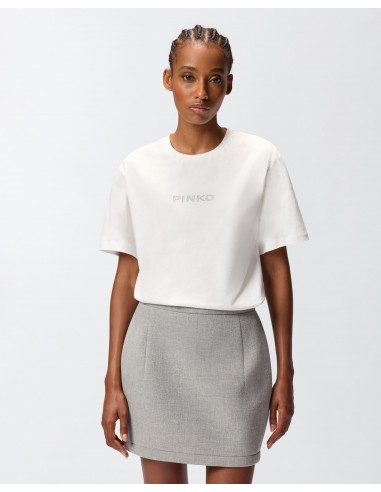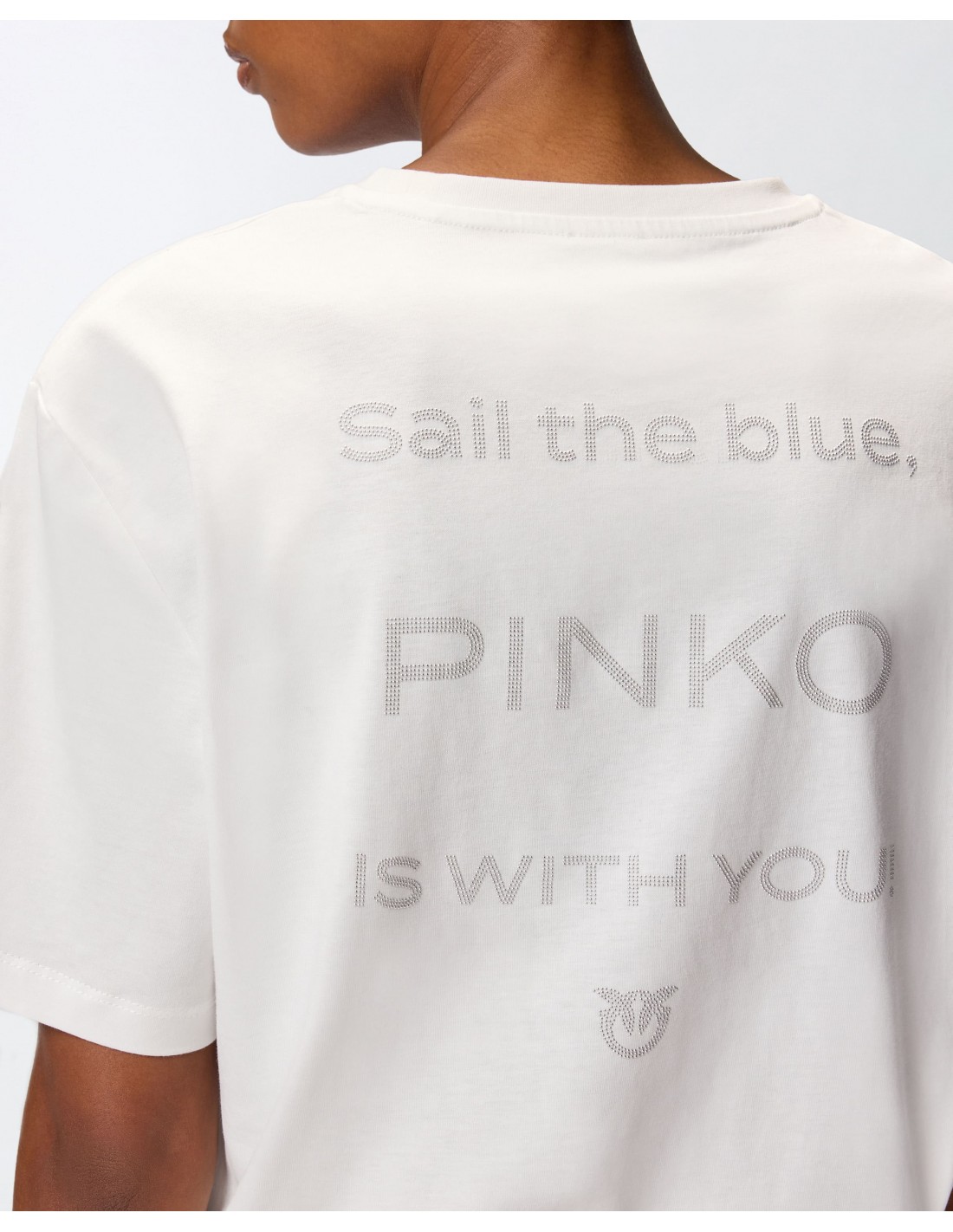 La Camiseta logotipo strass blanca de Pinko es un imprescindible del armario femenino que combina elegancia y originalidad. Confeccionada en punto de algodón de alta calidad con cuello redondo y manga corta, presenta el logotipo PINKO y el eslogan “Sail the blue PINKO IS WITH YOU” decorados con brillante pedrería y strass, así como el icónico logotipo Love Birds. Este diseño artesanal aporta un acabado sofisticado y duradero, perfecto para elevar cualquier look, ya sea con pantalones, faldas o jeans. Una prenda versátil que fusiona comodidad y estilo con un toque de lujo discreto.