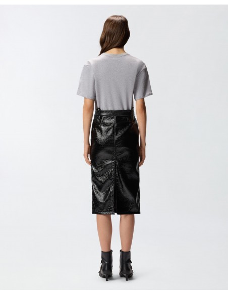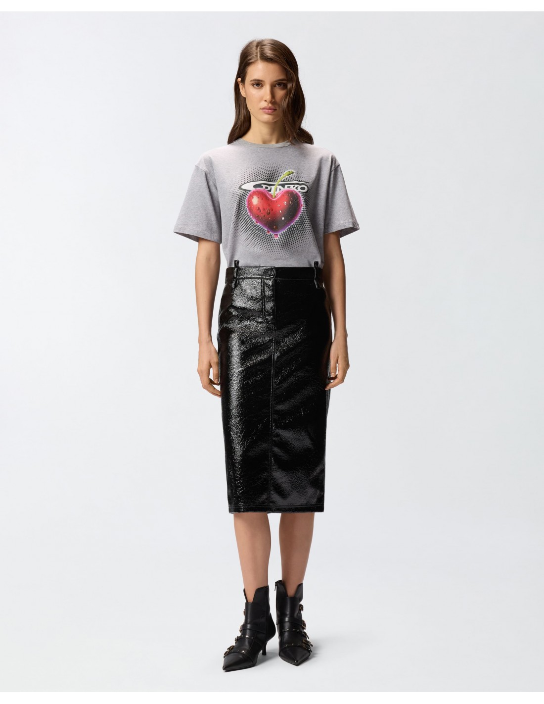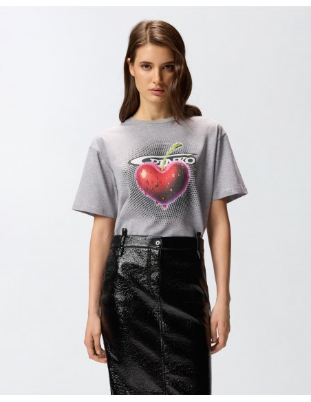 La Camiseta jaspeada estampada de Pinko es una prenda casual y femenina ideal para el día a día. Confeccionada en suave punto de algodón elástico jaspeado, cuenta con cuello redondo acanalado y manga corta, ofreciendo un ajuste cómodo de corte regular. La parte delantera se realza con un original estampado de cereza acompañado del logotipo PINKO, que aporta un toque de diversión y estilo a tu look. Perfecta para combinar con vaqueros o pantalones casuales, esta camiseta se convierte en un básico versátil, ligero y fácil de llevar en cualquier ocasión.