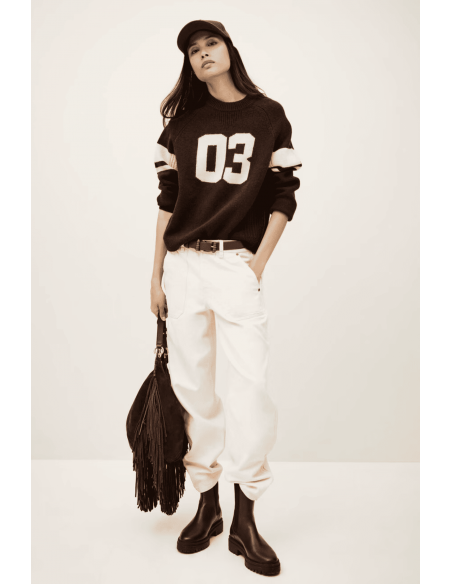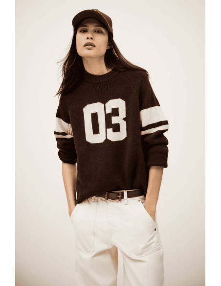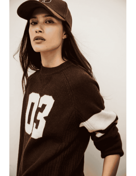 El jersey Cobe de Ba&sh es una prenda de lujo que combina elegancia atemporal y confort absoluto. Confeccionado en 100% cashmere, ofrece una suavidad excepcional y un calor ligero, perfecto para los días frescos. Su diseño bicolor en marrón chocolate y beige aporta un contraste sofisticado y fácil de combinar. El frontal destaca por su sencillez refinada, mientras que en la parte trasera luce el logo bordado de Ba&sh, detalle icónico que eleva la prenda con un toque exclusivo. Con corte regular y punto de alta calidad, es un básico versátil para looks casuales o más pulidos.