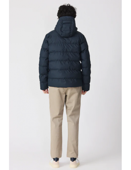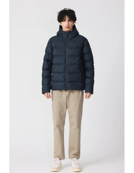El Hrom Navy de Tanta es un abrigo acolchado impermeable diseñado para combinar comodidad, calidez y estilo urbano. Su acolchado sin plumas, con cámaras sin costuras y capa aislante transpirable, garantiza protección térmica sin renunciar a la ligereza. Presenta cremallera sellada impermeable de doble cursor, bolsillos con cremalleras impermeables en contraste, forro polar en los bolsillos, capucha ajustable con visera incorporada y puños cortavientos para máxima protección. Un diseño fresco y deportivo que se adapta a la ciudad con un acabado 100% repelente al agua.