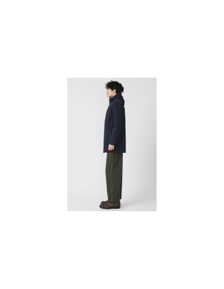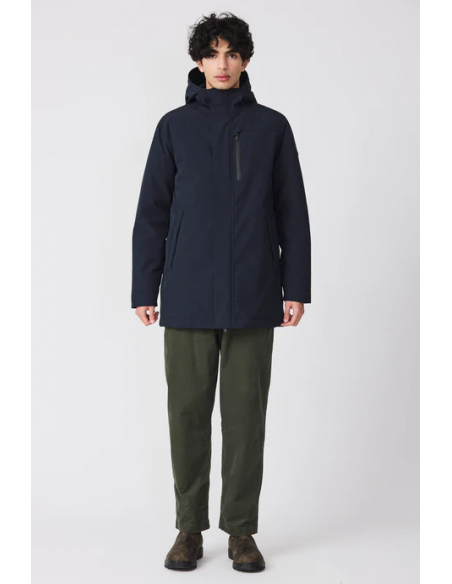 El diseño incluye cremallera impermeable de doble cursor oculta bajo tapeta con cierres magnéticos, bolsillos exteriores con forro polar, puños cortavientos y capucha ajustable con cuello alto que aíslan del frío y la lluvia. En el interior, destaca un forro brillante de nailon, un bolsillo con cremallera, un bolsillo extra para guantes o gorro y un compartimento estampado. Con su corte regular y acabados funcionales.