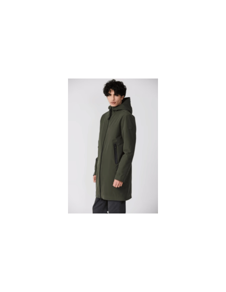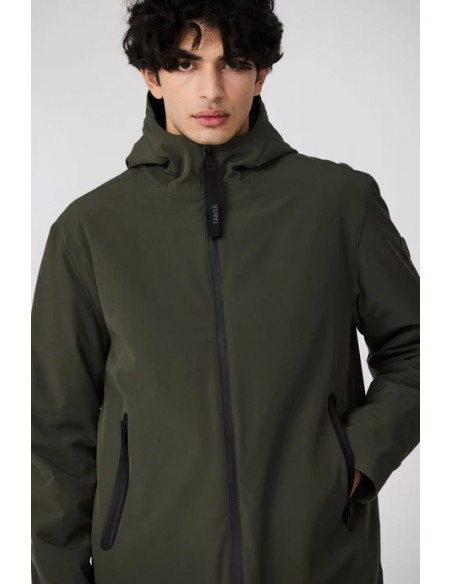 El abrigo Pogpung Khaki de Tanta combina protección técnica y estilo urbano. Confeccionado en Softshell impermeable con aislamiento ligero sin plumas y transpirable, cuenta con costuras totalmente selladas y cremallera frontal de doble cursor para máxima resistencia al agua. Incluye bolsillos termosellados, interior de bolsillos forrados en polar, puños cortaviento, capucha ajustable con visera y tirantes tipo mochila para llevar la prenda cómodamente cuando no se usa. Corte regular que se ajusta a la talla habitual.