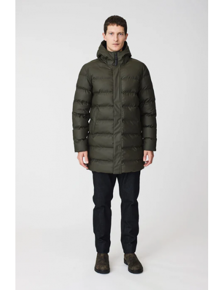 El abrigo Bagyo Khaki de Tanta ofrece calor y protección duraderos en días fríos y lluviosos. Confeccionado en PU 100 % impermeable y acolchado con aislamiento ligero sin plumas, presenta costuras termoselladas y cámaras sin costuras para un acabado limpio y moderno. Incluye cremallera frontal de doble cursor con cierres magnéticos ocultos, capucha ajustable con cordón y detalle trasero regulable, bolsillos impermeables y forrados en terciopelo polar, puños cortaviento y tirantes interiores tipo mochila para llevar la prenda cómodamente sin usar las manos. Corte regular que se ajusta a la talla habitual.