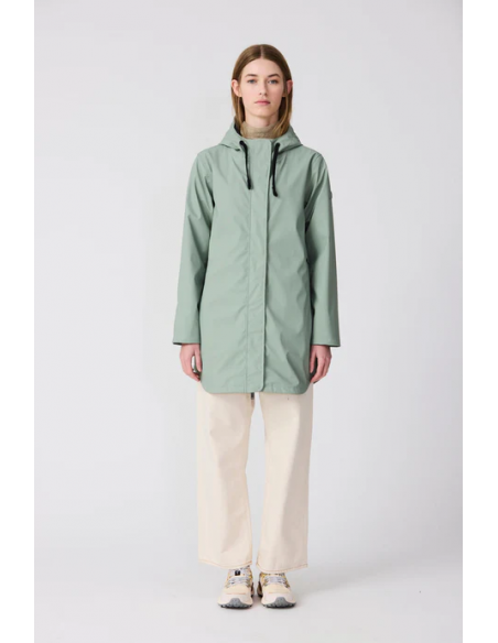 La chaqueta Snow Iceberg Green de Tanta combina funcionalidad y estilo contemporáneo. Confeccionada en PU mate 100% impermeable con costuras totalmente selladas, incorpora un aislamiento ligero sin plumas tipo C que retiene el calor y permite la evacuación de humedad. Su bajo curvado y el forro polar aterciopelado desde hombros hasta cintura ofrecen confort y calidez. Incluye capucha ajustable con cordón, cuello alto, cremalleras de doble cursor, bolsillos impermeables con ribete, interior de bolsillos en forro polar y puños cortaviento. Corte regular con forma de A y canesú trasero con pliegue.