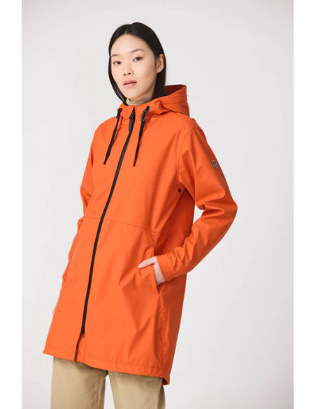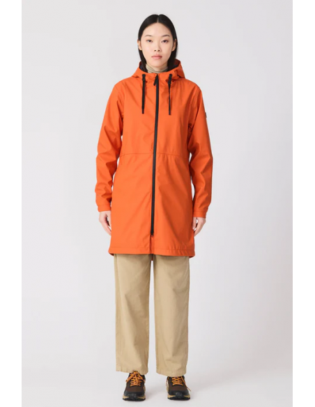 El abrigo Vand Koi de Tanta ofrece protección completa contra la lluvia y el frío con un diseño moderno y minimalista. Confeccionado en PU impermeable 100% y costuras totalmente selladas, cuenta con aislamiento ligero tipo C sin plumas y transpirable que retiene el calor corporal mientras permite la evacuación de la humedad. Presenta cremallera frontal impermeable, capucha ajustable con visera incorporada, cuello alto, bolsillos ocultos con cremalleras y ojales de ventilación bajo las axilas. Los puños elásticos y el bolsillo interior completan la funcionalidad de esta prenda versátil, perfecta para otoño e invierno.