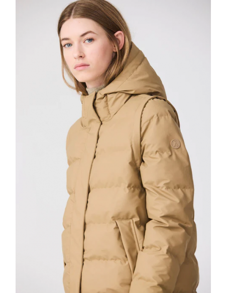 El plumífero Stuhi Kelp de Tanta combina funcionalidad y diseño moderno con un tejido PU impermeable 100% y costuras completamente selladas. Su relleno sin plumas y transpirable mantiene el calor corporal, mientras que su diseño 2 en 1 permite convertirlo en chaleco desmontando las mangas. Incorpora capucha fija con cordón y visera, cremalleras impermeables de doble cursor con tapeta, bolsillos ribeteados con interior de terciopelo polar y puños internos cortaviento. Una prenda versátil, perfecta para la transición de estación.
