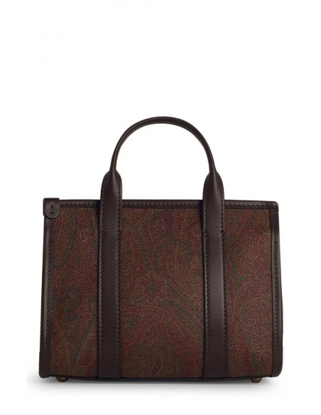 Composición: exterior en tejido de algodón Paisley jacquard con revestimiento 100% PVC, acabados en piel de becerro y forro en piel de vaca. Medidas: 20 x 15 x 9 cm.