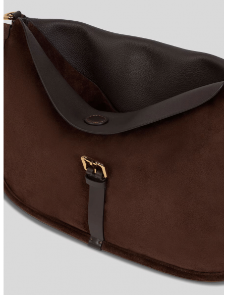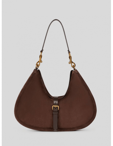 El Bolso Pony Maxi de ante de Etro combina elegancia atemporal y espíritu artesanal en un diseño de líneas suaves y sofisticadas. Confeccionado en ante de piel de becerro, destaca por su estructura fluida tipo hobo y su doble sistema de cierre: uno principal con botón magnético y otro con hebilla metálica funcional.