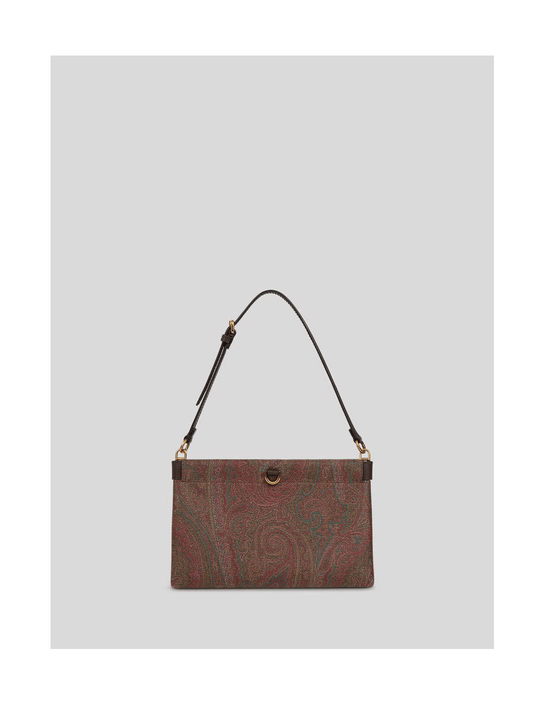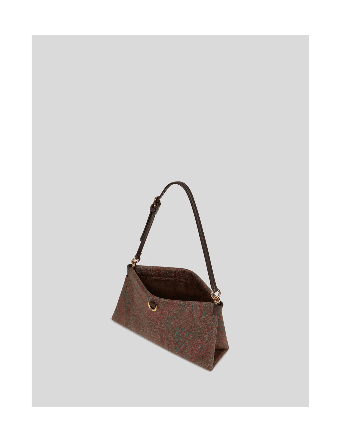 La correa fina y ajustable permite llevarlo al hombro o cruzado, y los detalles metálicos en acabado dorado realzan su estilo atemporal. Una pieza que combina artesanía italiana, herencia gráfica y diseño contemporáneo.