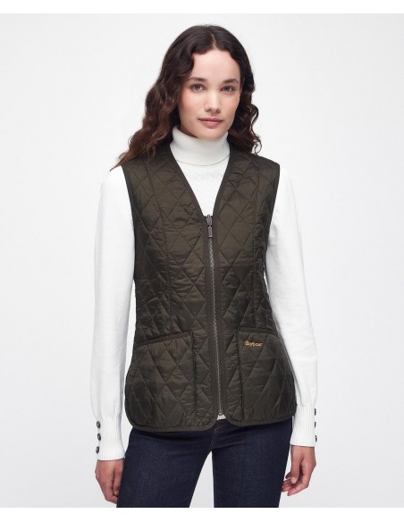 Confeccionado en poliamida 100% con relleno de poliéster, este liner presenta un acabado acolchado en rombos que aporta textura y aislamiento ligero. Los detalles en grosgrain tonal, el bordado Barbour en contraste y los profundos bolsillos parche combinan funcionalidad con un diseño elegante y discreto.