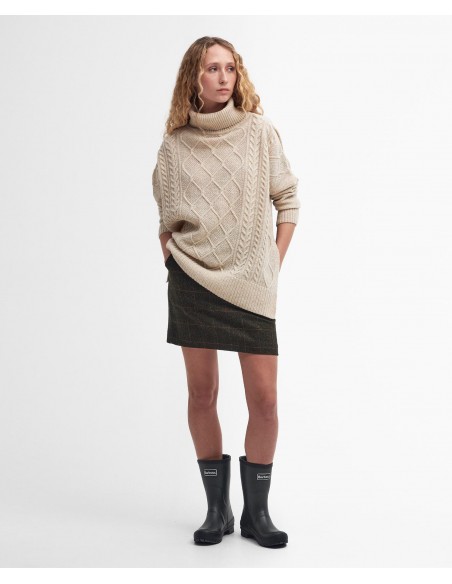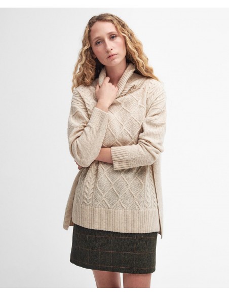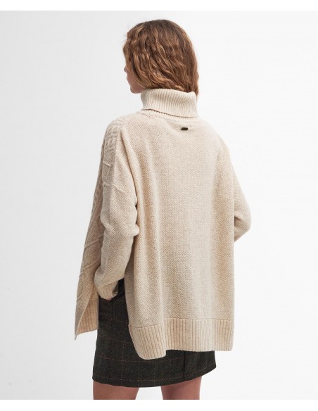 La Burne Cape de Barbour combina el encanto clásico del punto con la calidez envolvente de una mezcla premium de lana y poliamida. Su silueta tipo capa, con cuello vuelto y mangas largas, ofrece un estilo sofisticado y funcional, perfecto para renovar los looks casuales con un toque de distinción británica.