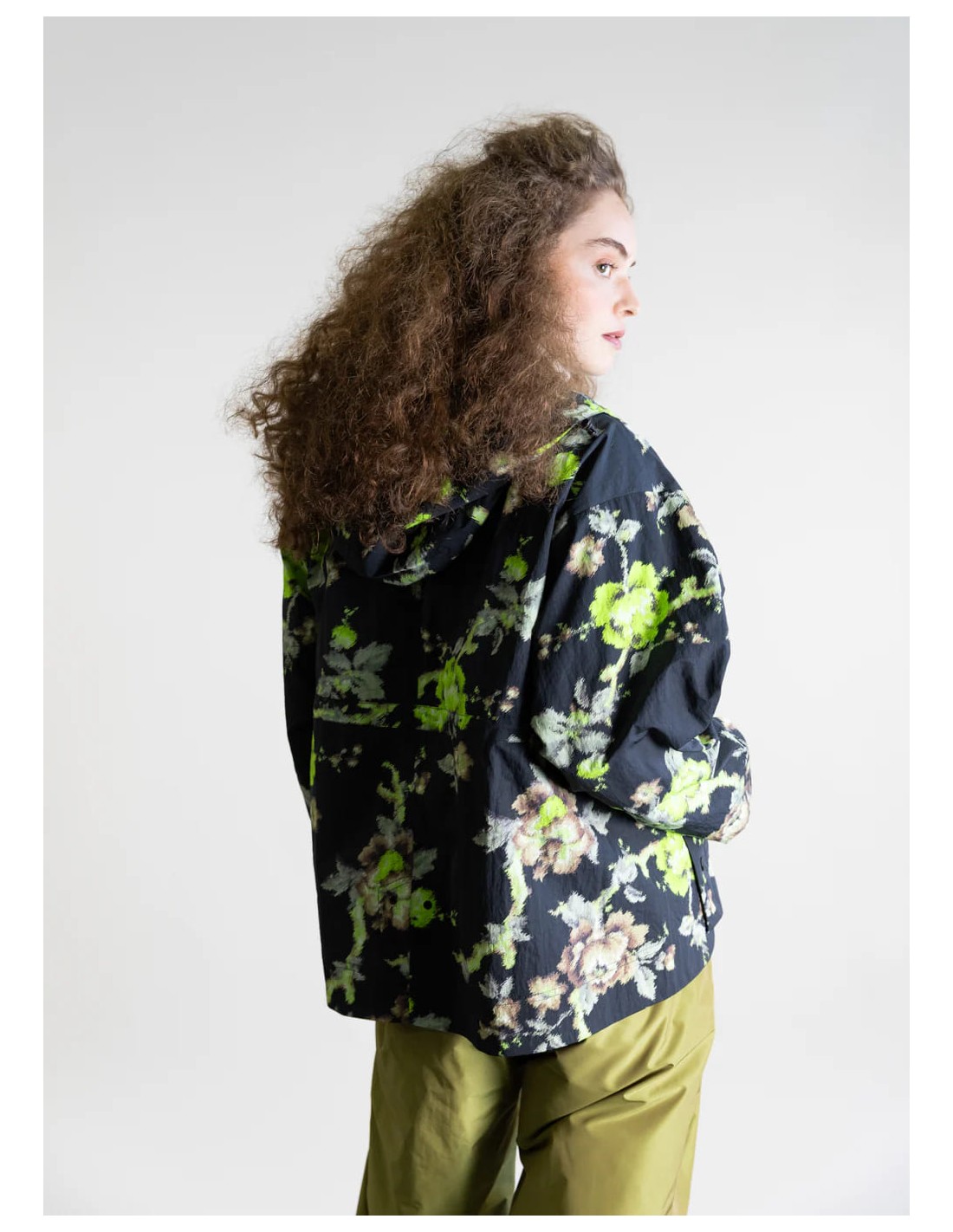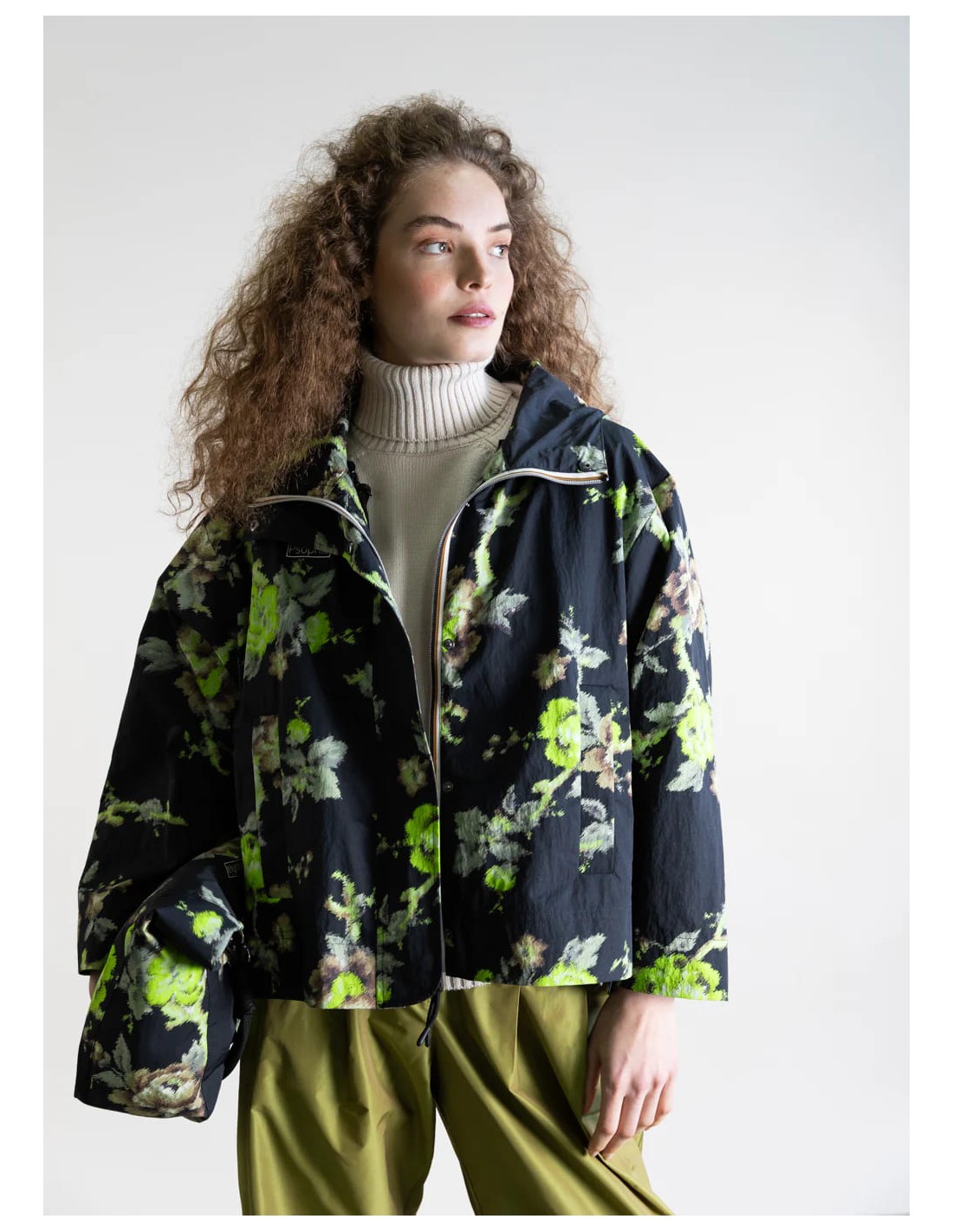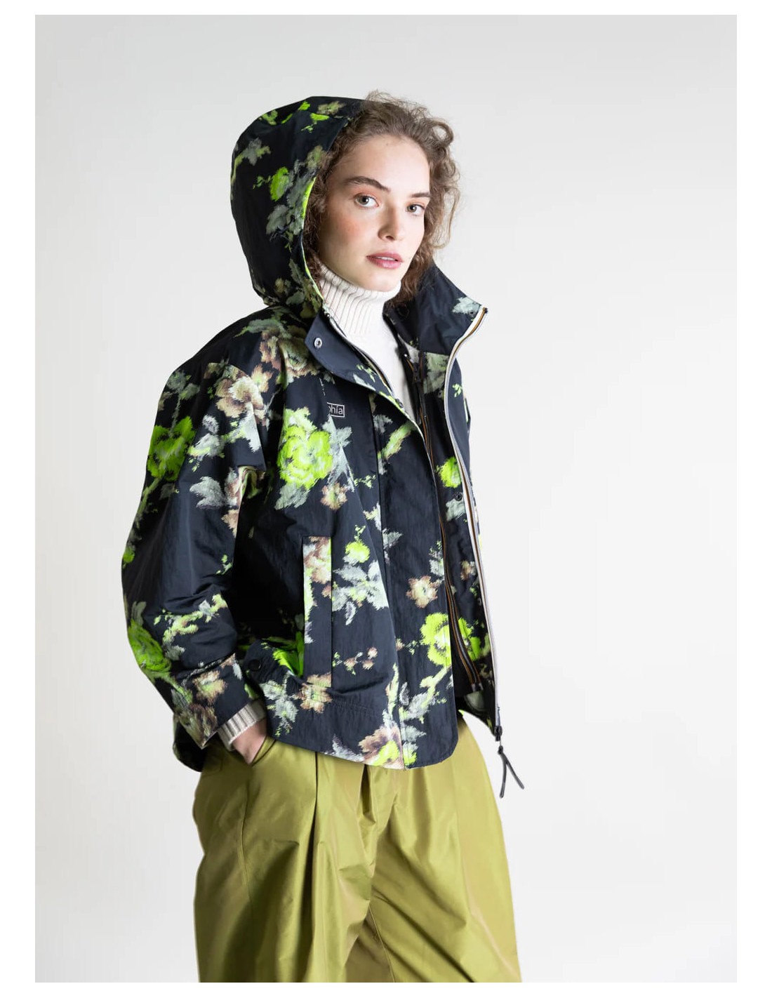 La Jacket Indian Flower de Psophía combina estilo y funcionalidad en una prenda ligera con carácter urbano. Confeccionada en 100% nylon, destaca por su diseño corto tipo overshirt, con capucha integrada, mangas amplias y fluidas hasta la muñeca, y cierre frontal con cremallera y tapeta que aporta un acabado limpio y práctico.