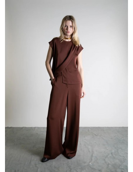 El Naia Clean Line Draped Shoulder Top de Psophía redefine la elegancia minimalista con un diseño limpio y una silueta contemporánea. Su corte sin mangas y el drapeado sutil en el hombro crean un equilibrio perfecto entre estructura y fluidez, aportando movimiento y sofisticación al conjunto.