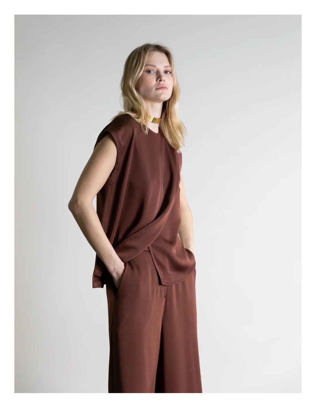 Perfecto para combinar con pantalones sastre o faldas fluidas, este top es una pieza versátil que transita con elegancia entre el día y la noche.