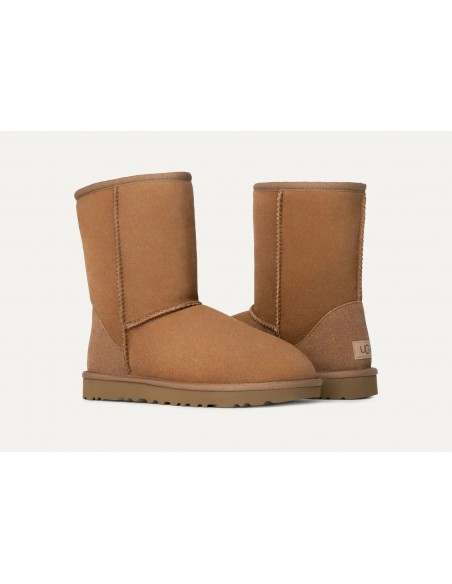 Las UGG Classic Short II Chestnut para mujer son un icono de la marca, nacidas en la costa para abrigar a los surfistas y convertidas en un básico de estilo atemporal. Están confeccionadas en piel de oveja Twinface de gran suavidad, tratada para repeler la humedad, y presentan costuras con sobrehilado que refuerzan su durabilidad.