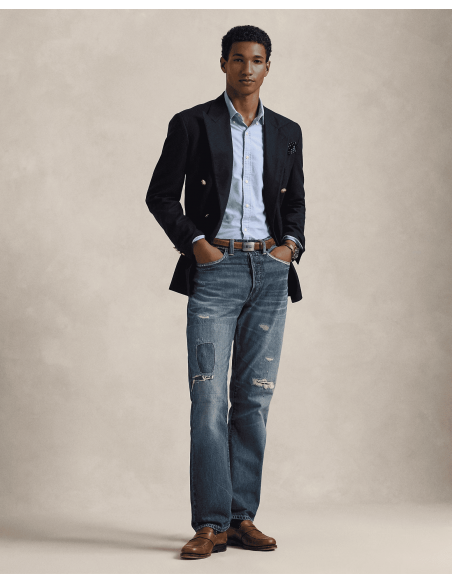 El diseño se completa con el caballo de la marca bordado en el pecho, sello distintivo de Ralph Lauren.