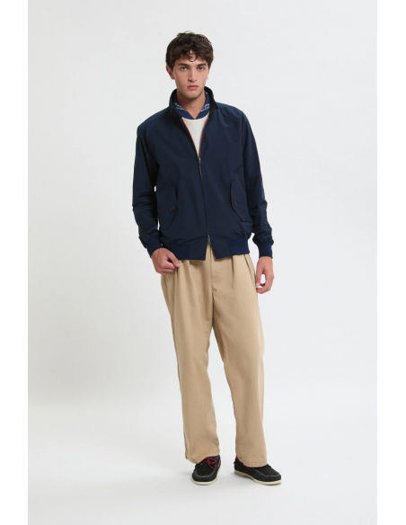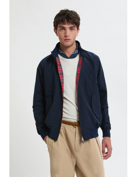 La Baracuta G9 Harrington Jacket Navy está diseñada y fabricada en el Reino Unido desde 1937. Una prenda icónica de estilo británico, reconocida por su versatilidad y su herencia cultural, que se mantiene vigente temporada tras temporada. Su interior está forrado con el emblemático Fraser Tartan en algodón Coolmax® transpirable, que aporta confort y ventilación. Entre sus detalles distintivos destacan el cuello dog ear con cierre de dos botones, las mangas raglán que garantizan libertad de movimiento, el umbrella back yoke que protege de la lluvia y los bolsillos diagonales diseñados originalmente para guardar pelotas de golf. Los puños, cintura y cuello interior acanalados aportan ajuste y protección adicional.